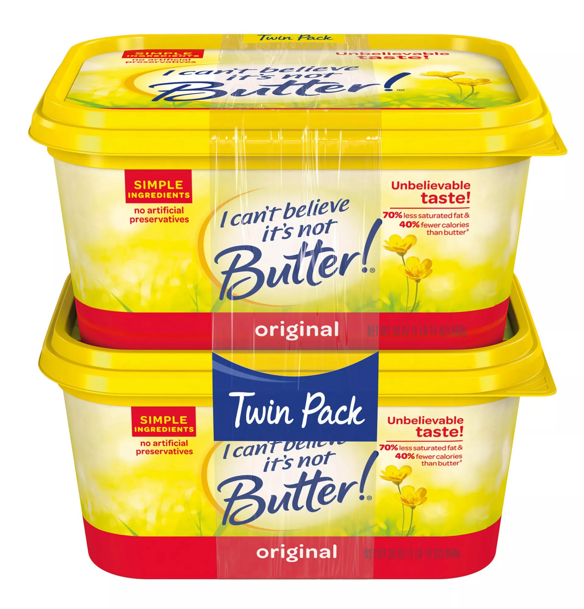 The i can't believe it's not has become all lowercase and changed typeface, butter is also smaller, and the ! larger. I can't believe it's not butter! Oct 15, 2018 · 4) salt: I can't believe it's not butter! I can't believe it's not ! For its original spread, the margarine's marketers praise it for having "70% less saturated fat than butter.".